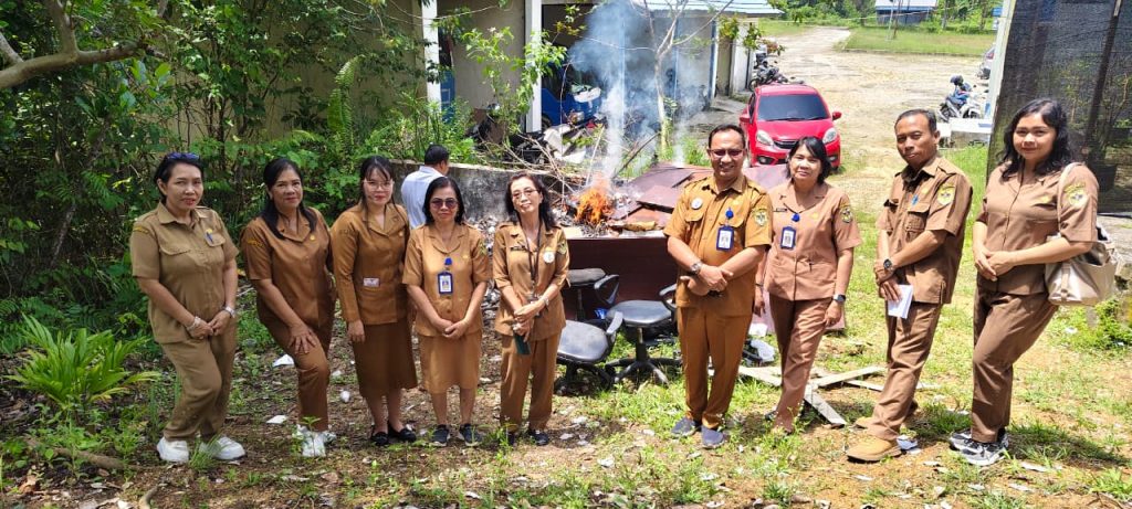 KUALA KURUN , DP2KBP3A – Dalam upaya mengelola aset daerah secara efisien, Dinas Pengendalian Penduduk kelurga berencana Pemberdayaan perempuan dan perlindungan Anak (DP2KBP3A) bersama Badan Keuangan dan Aset Daerah (BKAD) Kabupaten Gunung Mas memusnahkan beberapa barang inventaris rusak berat, selasa 4 Nopember 2025.Proses pemusnahan dipimpin langsung oleh sub Koordinator Analisis Keuangan dan aset Daerah Gunung Mas SISCA SILVIANITHA,SE,MEBarang-barang yang dimusnahkan meliputi Printer, kursi, meja, kipas angin, dan peralatan lainnya yang dinilai tidak layak pakai.